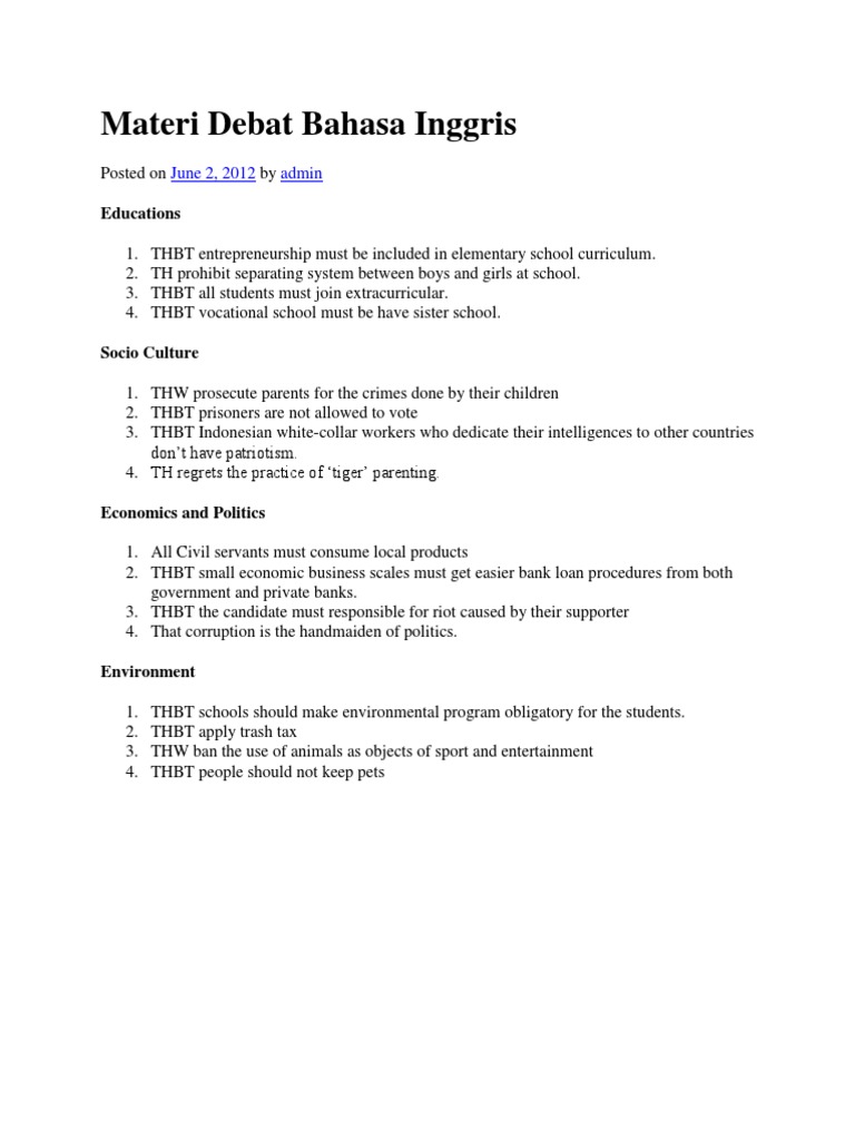 Materi Debat Bahasa Inggris Pdf