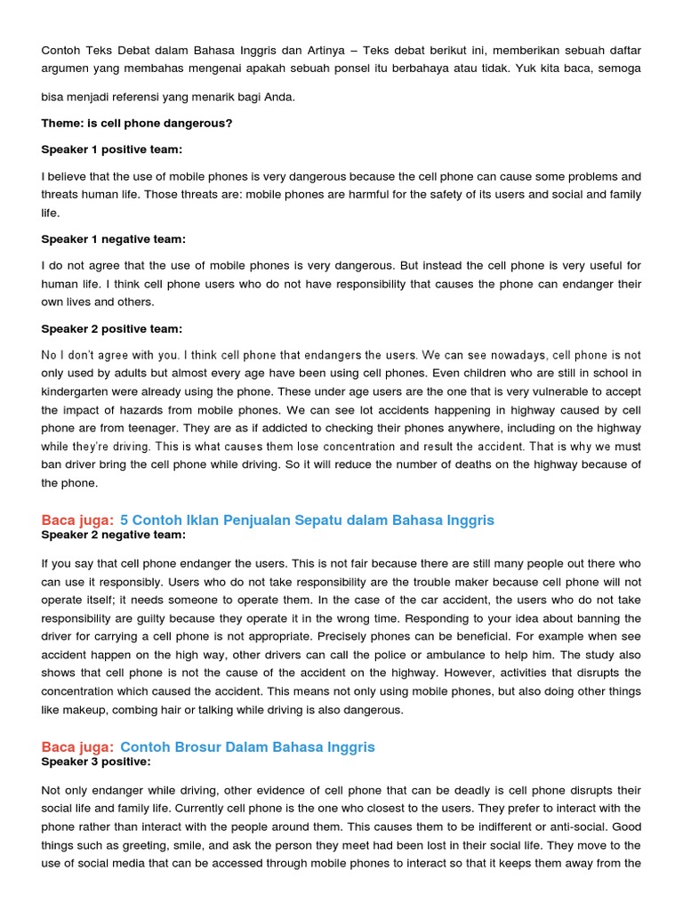 Contoh Teks Debat Dalam Bahasa Inggris Dan Artinya Pdf